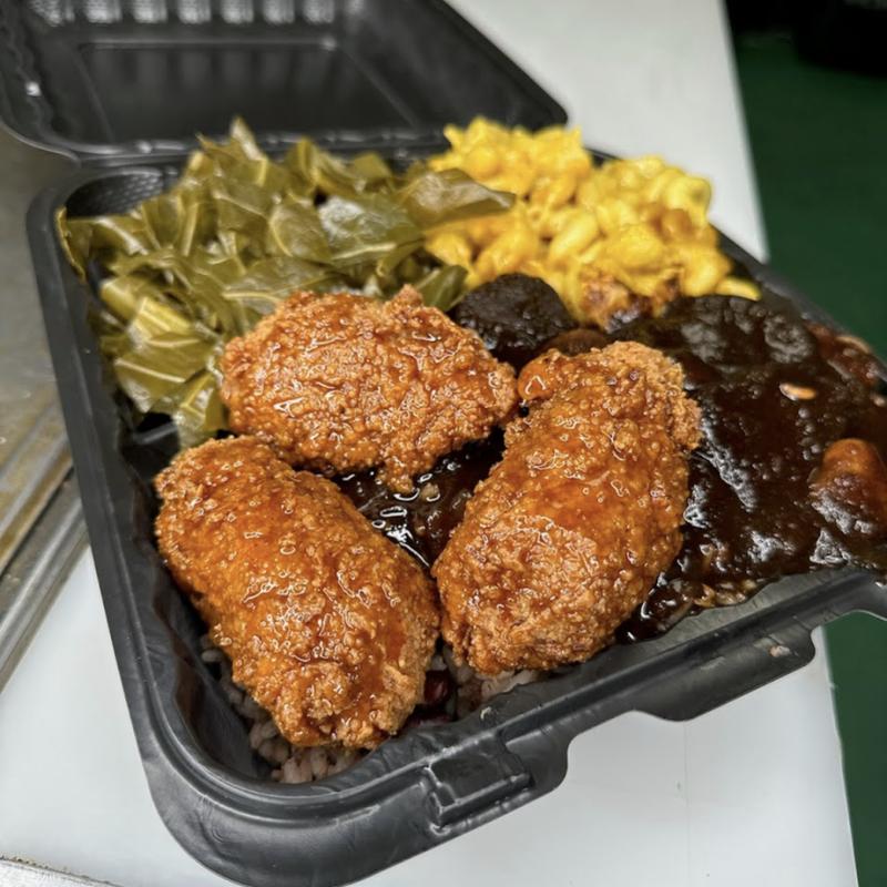 Deep fried oyster wings served with your choice of rice and 2 side.